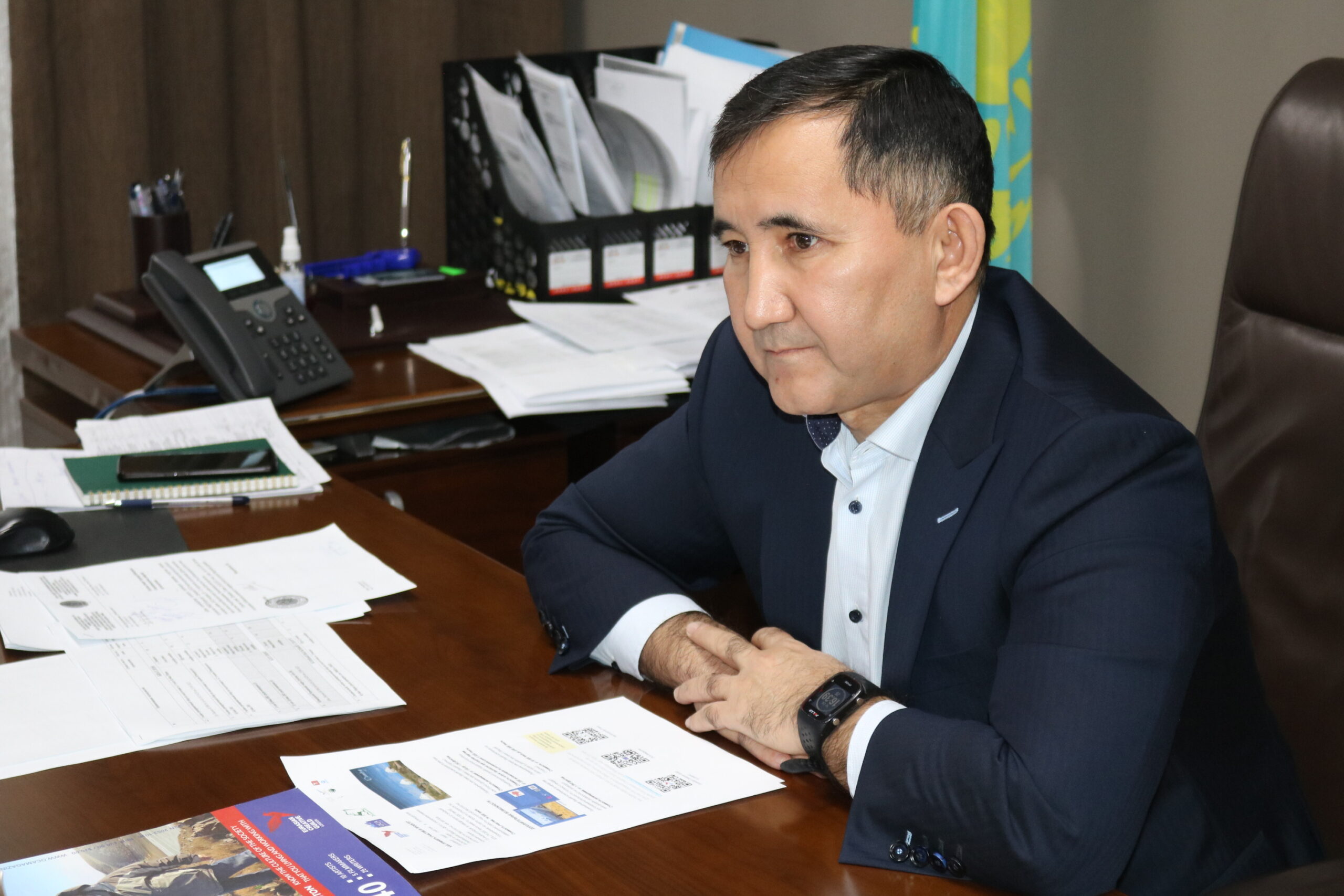 He was very happy to welcome me as Chairman of the Eurasian Creative Guild and was as keen to know about our work in publishing and creative events, as we were to know about him. We discussed a wide range of topics and he was amused by my description of the black run at Akbulak, which I have never managed to ski without falling.